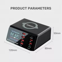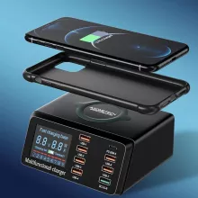 100W 8-Port USB Charging Station with Wireless Charger & Digital Display