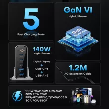 This charger isn’t just another power brick—it’s a desktop powerhouse. Thanks to cutting-edge GaN (Gallium Nitride) technology, it’s smaller, runs cooler, and charges faster than traditional silicon-based chargers. With support for the latest protocols like PD 3.0, QC 4.0, PPS, SCP, and more, it ensures full compatibility with both current and future devices.