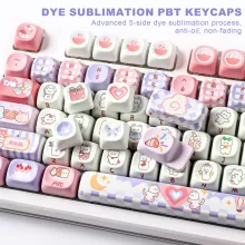 Transform your mechanical keyboard into a colorful masterpiece with this 141-Key MOA Profile Keycap Set. Designed for mechanical keyboards with MX-style switches, this set brings a touch of charm and fun to your setup with its adorable party-themed design and soft pastel color palette. Whether you’re customizing your keyboard for gaming, work, or personal expression, these keycaps offer a beautiful blend of style and performance.