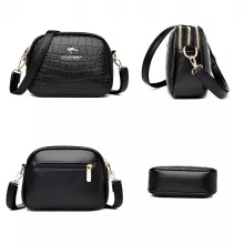 3-Layer Zipper Crocodile PU Leather Crossbody Shoulder Bag for Women