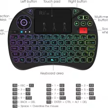 This powerful mini keyboard combines a responsive QWERTY layout with a multi-touch pad and built-in air mouse, offering a truly versatile control experience. The vibrant color-changing LED backlight lets you type comfortably in the dark, while its ergonomic shape fits perfectly in your hands.
