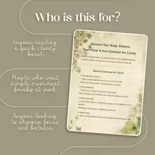 Reclaim your balance and clarity in minutes a day. Download Balance Your Body, Balance Your Mind: A Fun Checklist for Clarity now and start feeling more centered, energized, and ready for whatever comes your way.