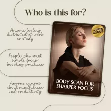 Don’t let distractions drain your energy. Download Body Scan for Sharper Focus today and start using your body’s awareness to create sharper concentration, stronger productivity, and calmer focus—whenever you need it most.