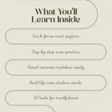Unlike generic mindfulness resources, Body Scan for Sharper Focus blends clear step-by-step instructions with workplace-ready reset techniques and cutting-edge AI tools. It’s built to be practical, actionable, and results-driven—so you can see benefits right away without hours of training or setup.