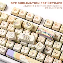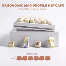Each keycap is brought to life using a 5-side dye sublimation technique, ensuring vibrant, fade-resistant color from every angle. The set includes fun, hand-painted patterns that are both cute and expressive, while the sculpted MAO profile offers a unique shape that’s ergonomic, smooth, and satisfying to type on. Ideal for daily work, gaming sessions, or simply adding a pop of joy to your desk, these keycaps fit most keyboard layouts and MX-style switches with ease.