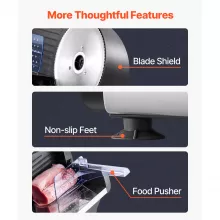 Don’t let tedious food preparation hold you back. Invest in our Electric Deli Food Slicer and revolutionize your kitchen routine. Enjoy the ease of quick, consistent slicing that enhances your meals and impresses your guests. Order your slicer today and discover a new level of culinary convenience!