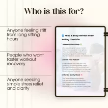 This is more than a basic list of stretches. The Mind & Body Refresh Foam Rolling Checklist combines physical relief with mental clarity, offering structured steps for both body and mind. With added guidance on using AI tools, you’ll have modern support to keep your wellness practice engaging and personalized. Perfect for busy professionals, athletes, students, or anyone who wants quick and effective ways to recharge.