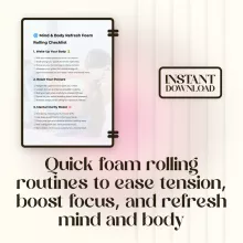 Bring energy back to your body and calm to your mind with the Mind & Body Refresh Foam Rolling Checklist. This digital download is designed to guide you through simple yet effective foam rolling routines that improve circulation, reset posture, enhance recovery, and provide mental clarity. Whether you want a quick morning boost, a pre-workout warm-up, or an evening relaxation session, this checklist helps you create a consistent self-care practice that fits your schedule. It’s an easy-to-follow resource for anyone looking to use foam rolling to refresh the mind and body every day.