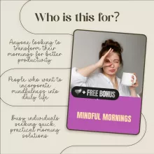 Don’t let another chaotic morning slip by. Download your Mindful Mornings guide today and start experiencing the transformative power of a mindful morning routine. Click below to purchase and get instant access!