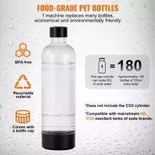- Instant Carbonation: Get crisp soda water in just 3 seconds—simply fill the BPA-free 1L PET bottle with cold water, attach your CO₂ cylinder, and press to fizz.