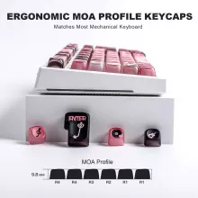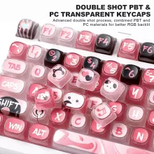 Made from a premium blend of PBT and PC materials, these keycaps are built to last. The double-shot molding ensures the legends never fade, while the transparent PC sides allow vibrant RGB backlighting to shine through like never before. The MOA profile adds a playful, ergonomic touch with its rounded shapes and increased finger contact surface — perfect for long typing sessions or gaming marathons.