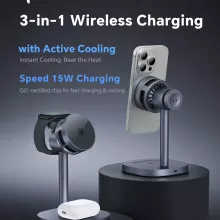 Say goodbye to cluttered charging spaces and overheating devices. This Qi2-certified 3-in-1 Magnetic Wireless Charger delivers high-speed 15W fast charging for your iPhone, AirPods, and Apple Watch — all while actively cooling your phone with cutting-edge TEC semiconductor refrigeration. Designed to keep your device cool even during intensive use, this sleek stand is more than just a charger — it’s your everyday tech companion.