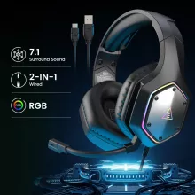 Experience breathtaking sound and unbeatable comfort with this RGB 7.1 Wired Gaming Headset. Designed for gamers who demand precision, power, and style, this headset combines immersive surround sound with noise-cancelling clarity to elevate your gameplay. Whether you’re battling enemies on your PC, coordinating with teammates on PS5, or enjoying portable play on your Switch or smartphone, this headset delivers exceptional performance across platforms. Plug in via USB or Type-C and get ready for crystal-clear communication and deep, thundering audio that brings every game to life.