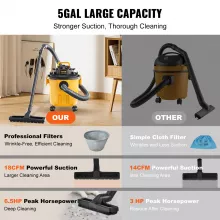 Take control of your cleaning routine with the Wet Dry Vacuum 5 Gallon 6HP. Designed for both wet and dry use, this powerhouse effortlessly handles dust, spills, pet hair, and even outdoor debris. With its strong 6 peak horsepower motor and 5-gallon capacity, it delivers unstoppable suction power for faster, deeper cleaning — whether in your garage, workshop, car, or home.