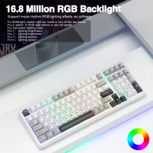 Level up your gaming experience with our Wireless Mechanical Gaming Keyboard. With its innovative gasket structure and 99 keys designed for high performance, this keyboard is perfect for serious gamers and everyday users alike. Enjoy seamless and responsive gaming with its advanced features, transforming the way you interact with your favorite games and applications. The adjustable RGB lighting adds a personalized touch, making your setup not just functional but visually appealing as well.