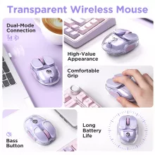 Bring charm and performance to your workspace with this compact wireless RGB mouse designed for smooth, quiet control. Featuring a translucent finish and a soft purple glow, this sleek mini mouse is built for portability and elegance—perfect for on-the-go professionals, students, gamers, or anyone who appreciates minimal design and maximum functionality.