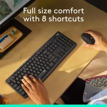 This combo includes a full-size keyboard with whisper-quiet keys and a responsive wireless mouse for seamless operation. Built with human-centered design, both devices fit naturally in your hands, reducing strain during long hours of use. With a stable 2.4GHz wireless connection, you’ll enjoy up to 33 feet of reliable range and clutter-free convenience.
