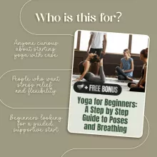 Start your yoga journey with confidence and clarity. Yoga for Beginners: A Step by Step Guide to Poses and Breathing is a digital ebook designed to make yoga accessible, enjoyable, and effective. Whether you’re completely new or have tried a few classes before, this guide gives you simple, structured steps to build a practice that fits into your lifestyle and supports both your body and mind. With practical instructions, inspiring case studies, and easy-to-follow routines, this resource makes yoga less intimidating and more rewarding.